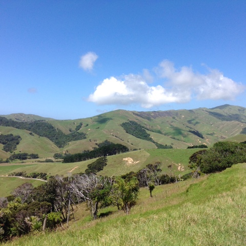 A view looking back on the mountains on the. Karamea Bluff. The water is brown from the tannins